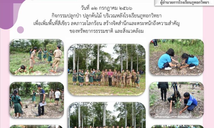 จดหมายข่าว ฉบับที่ 3 ประจำเดือน กรกฎาคม 2566 2 สิงหาคม 2023 ptw จดหมายข่าวโรงเรียน วันที่ ๑๒ กรกฎาคม ๒๕๖๖ กิจกรรมปลูกป่า ปลูกต้นไม้ บริเวณหลังโรงเรียนภูทอกวิทยา เพื่อเพิ่มพื้นที่สีเขียว ลดภาวะโลกร้อน สร้างจิตสำนึกและตระหนักถึงความสำคัญของทรัพยากรธรรมชาติ และสิ่งแวดล้อม