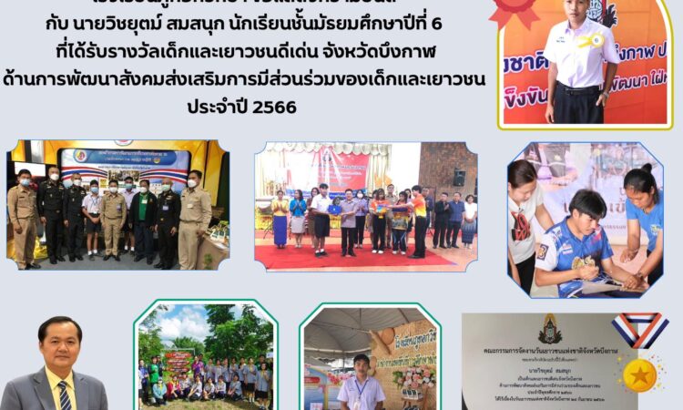 จดหมายข่าว ฉบับที่ 5 ประจำเดือน กันยายน 2566 3 ตุลาคม 2023 ptw จดหมายข่าวโรงเรียน โรงเรียนภูทอกวิทยา ขอแสดงความยินดีกับ นายวิชยุตม์ สมสนุก นักเรียนชั้นมัธยมศึกษาปีที่ 6 ที่ได้รับรางวัลเด็กและเยาวชนดีเด่น จังหวัดบึงกาฬ ด้านการพัฒนาสังคมส่งเสริมการมีส่วนร่วมของเด็กและเยาวชน ประจำปี 2566