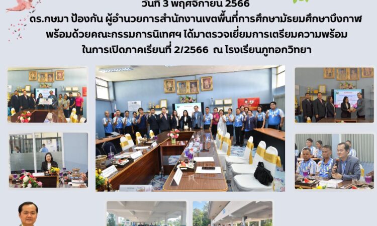 จดหมายข่าว ฉบับที่ 1 ประจำเดือน พฤศจิกายน 2566 8 พฤศจิกายน 2023 ptw จดหมายข่าวโรงเรียน วันที่ 3 พฤศจิกายน 2566 ดร.กษมา ป้องกัน ผู้อำนวยการสำนักงานเขตพื้นที่การศึกษามัธยมศึกษาบึงกาฬ พร้อมด้วยคณะกรรมการนิเทศฯ ได้มาตรวจเยี่ยมการเตรียมความพร้อม ในการเปิดภาคเรียนที่ 2/2566 ณ โรงเรียนภูทอกวิทยา
