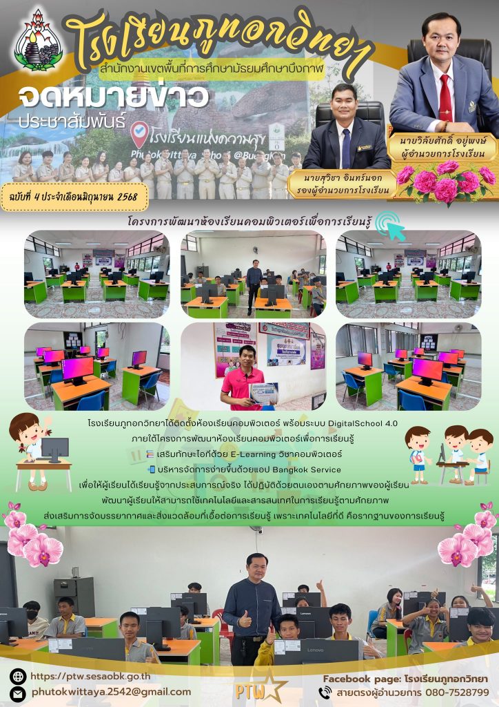โรงเรียนภูทอกวิทยาได้ติดตั้งห้องเรียนคอมพิวเตอร์ พร้อมระบบ DigitalSchool 4.0 ภายใต้โครงการพัฒนาห้องเรียนคอมพิวเตอร์เพื่อการเรียนรู้