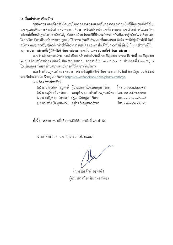นายวิลัยศักดิ์ อยู่พงษ์ ผู้อำนวยการโรงเรียนภูทอกวิทยา โทร. 08-07528799